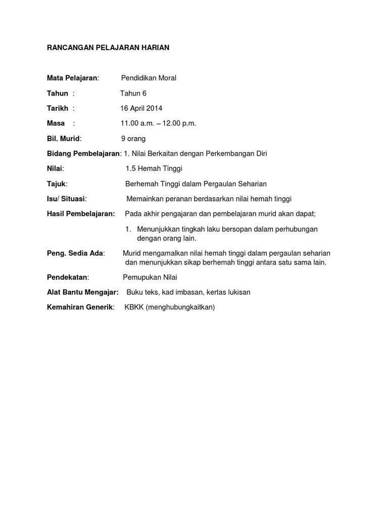 Top Pdf Rph Pendidikan Moral Tahun 5 Sumber Pendidikan 5 Hemah Tinggi 123dok Com