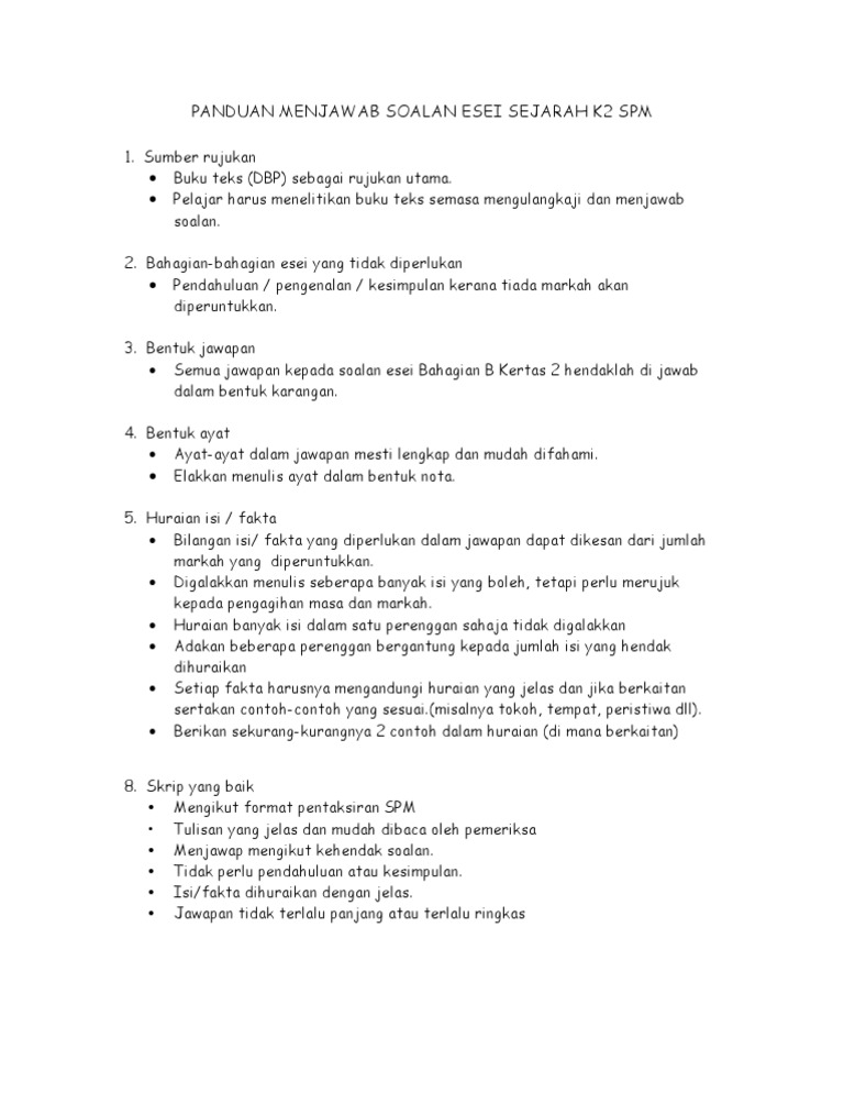 Panduan Menjawab Soalan Esei Sejarah K2 Spm Pdf